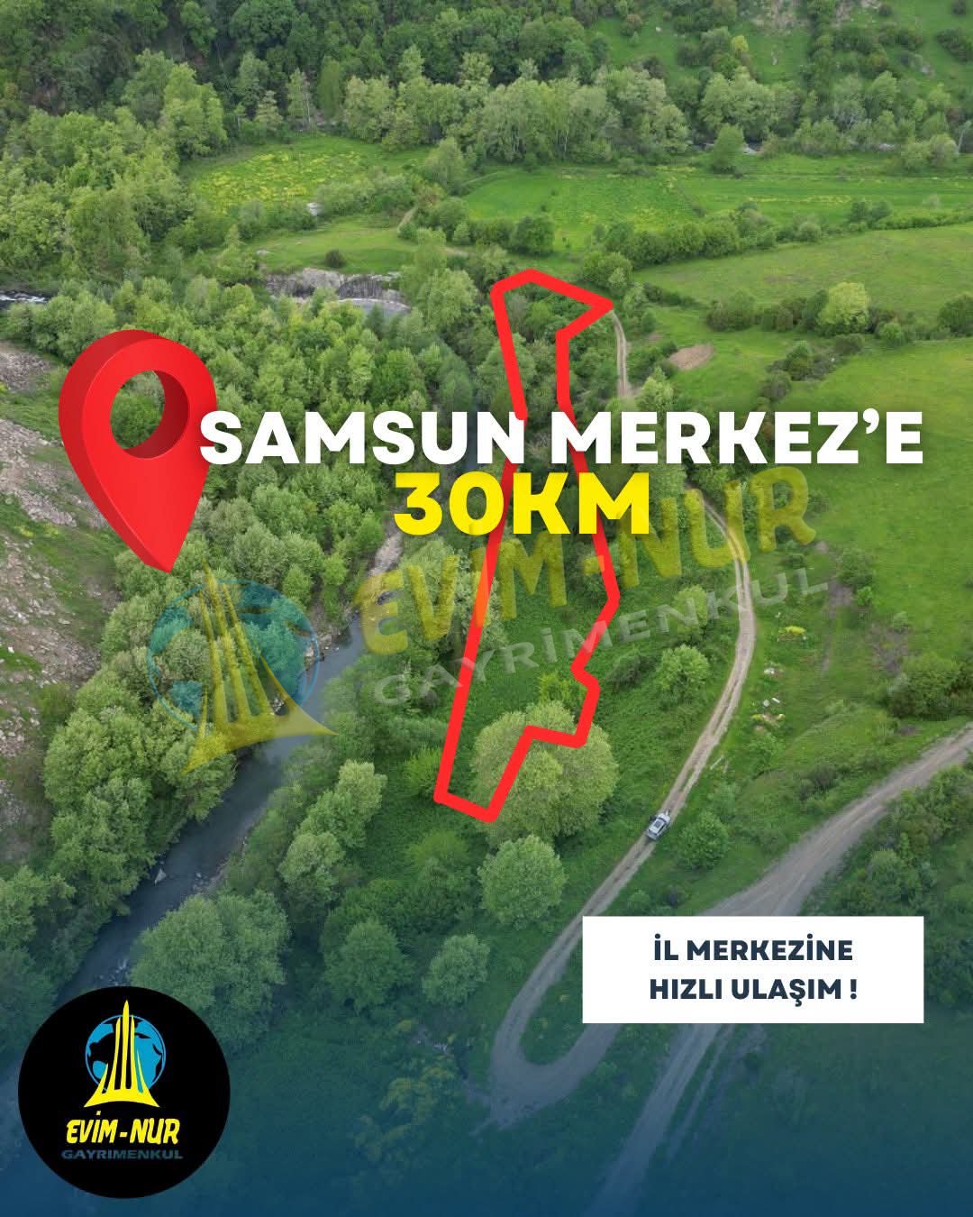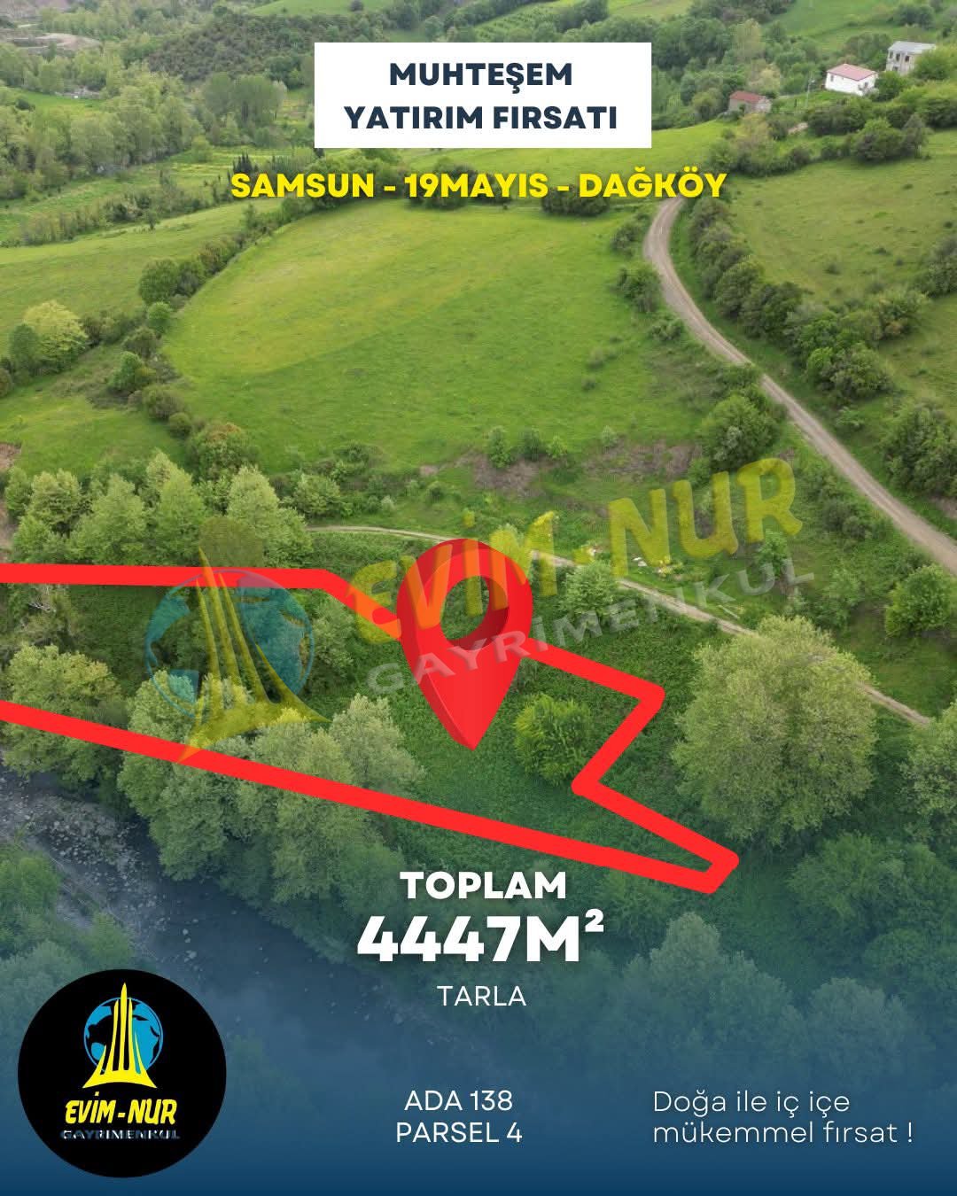 SAMSUN 19 MAYIS DAĞKÖY MAH 4.447m2 MANZARALI YOLU AÇIK FIRSAT TARLA Satılık