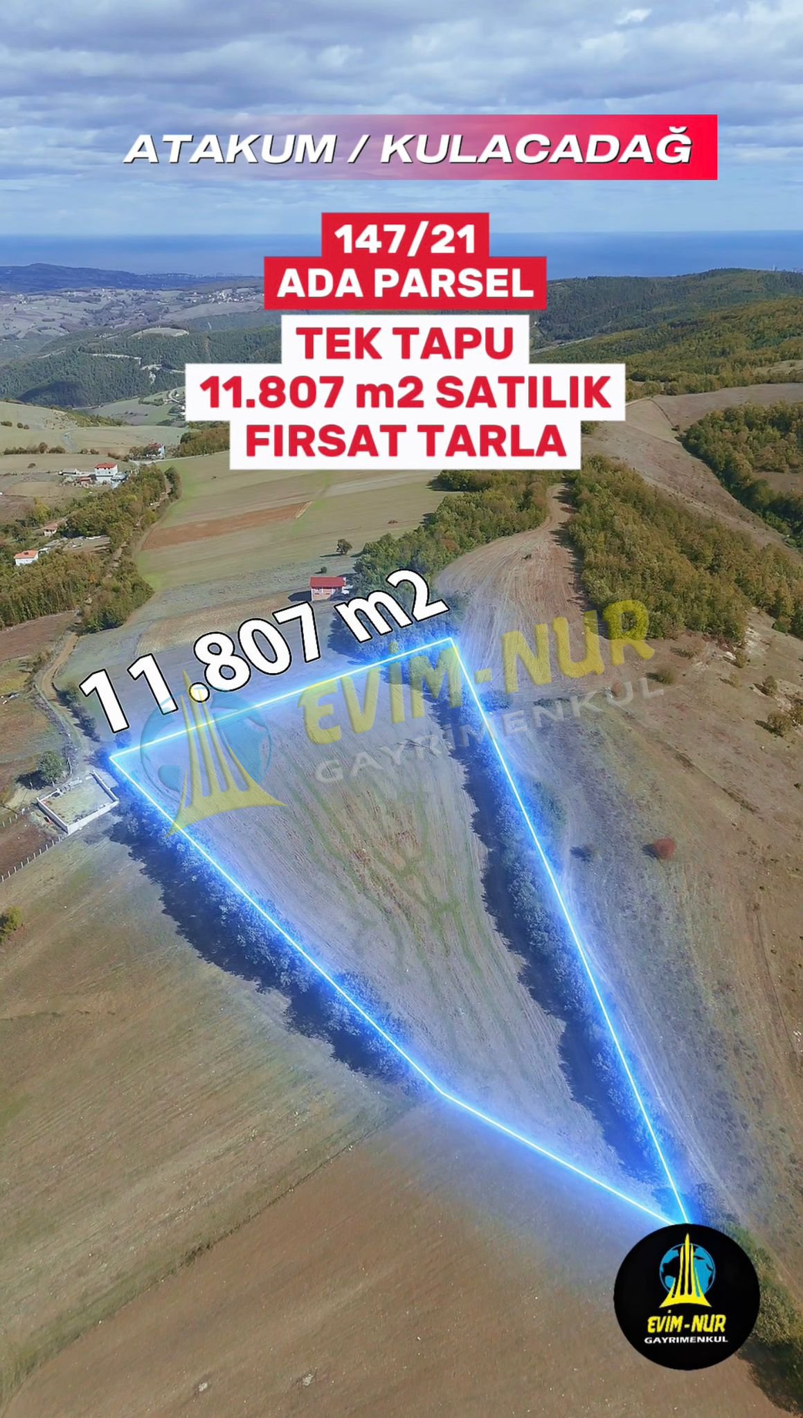 SAMSUN ATAKUM KULACADAĞ MH. 11.807 M2 ELEKTRİK, YOL, SU PROBLEMİ OLMAYAN 220 METRE KADASTROL YOLA CEPHESİ BULANAN EV YAPIMINA UYGUN FIRSAT TARLA Satılık